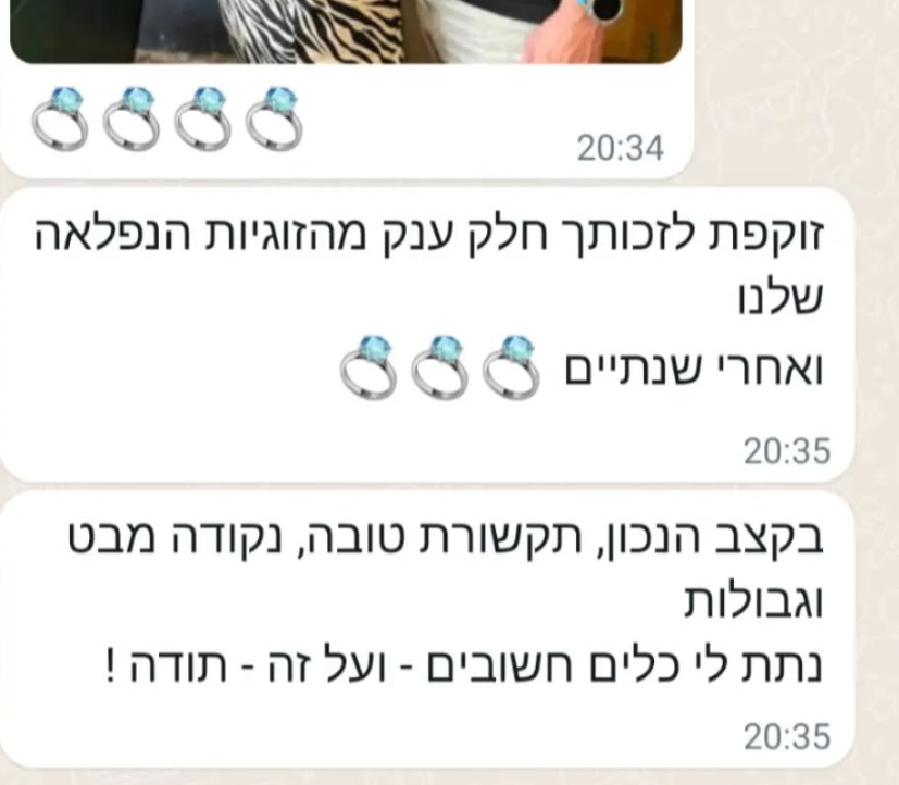 “אם יש מישהו שידחף אותך להצליח ובאמת יעזור לך להגיע לקצה גבול היכולת של עצמך, זה ירון. תודה ירון על זה שאתה שם בין אם זה קשור לזוגיות או לעסקים, ירון יודע לתת את הדחיפה בכיוון הנכון”